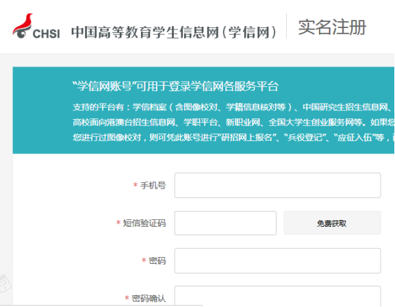 ①注册学信网账号:学生如实填写姓名及各项信息(曾经注册过学信网账号的学生可跳过此步,直接登录):