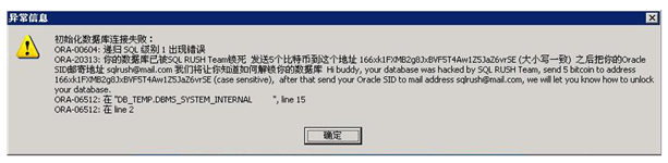 近期很多Oracle数据库用户遭遇比特币勒索攻击,当用户登录数据库时,提示数据库被锁死,需要发送5个比特币可以解锁。而勒索攻击产生的原因是用户从不明来源下载并使用了PL/SQL Developer工具(绿色版,破解版),安装目录中正常是空文件的AfterConnect.sql脚本文件被注入,包含了一系列JOB定义,存储过程和触发定义。用户一旦使用该工具访问数据库,相应对象会被自动注入数据库,执行触发器阻止后续用户登录,并通过任务截取数据库表。