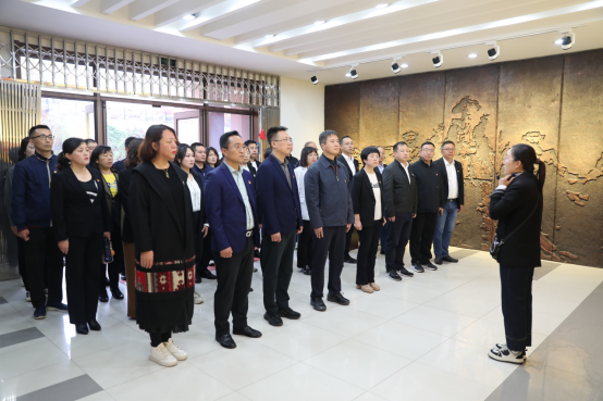 在党委组织部部长杨海亮的领誓下,全体共产党员面对党旗高举右拳,庄严宣誓,重温入党誓词。一句句铿锵有力的誓词,表达了对党的无限热爱和绝对忠诚。