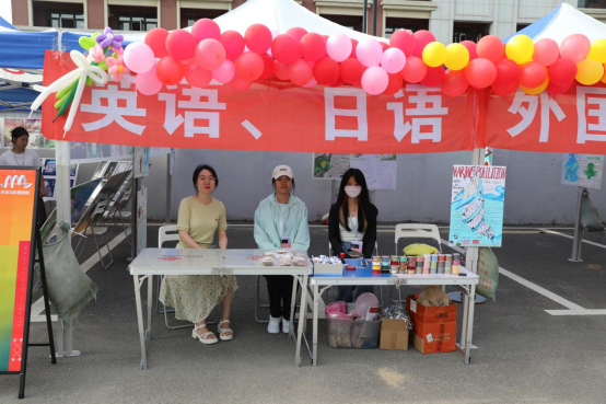 设置“英日文主题海报展”,包含学生手绘作品展示。同时,搭建手工艺品制作台,为新生提供制做心愿牌和五彩绳的材料,在入学之际送出美好的祝福。