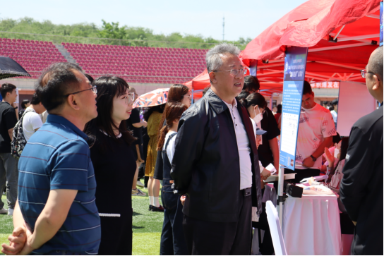 党政领导亲临招聘会现场,与招聘企业沟通交流,积极探讨校企合作新路径。