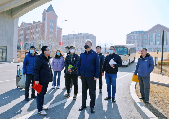 大门口,他要求外来人员入校流程和审批责任人要明确,加强安保队伍建设,保持队伍稳定,准确把握和研判涉政治安全、师生生命安全等领域事件;在健康驿站,郭玉铸对于入站流程、入站条件进行详细了解,对于驿站里的床位数量及缓冲区、生活区药品储藏室的情况进行了详细检查。他强调要按照上级要求配齐、配全药品、医疗设施及医护人员等,加强宣传,让师生了解健康驿站的相关情况;在学生食堂,他要求加强食品安全管理,增强食品卫生安全意识,认真做好食品留样工作,让师生吃得健康、吃得安心;在“一站式”学生社区党建活动室,郭玉铸要求要充分利用社区开展微党建活动,化整为零,发挥优势,将党的宣传思想工作深入社区、深入学生生活的每个角落。