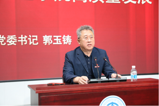 郭玉铸要求,学习贯彻党的二十大精神,必须覆盖每一名党员、每一名干部、每一名师生员工,要坚持无盲区、无死角、全覆盖,全面推动党的二十大精神进课堂、进基层、进一线、进“一站式”学生社区。要准确领会把握党的二十大报告中提出的新论断、新思想、新目标、新方略、新要求,力求学深学透、融会贯通,把党的二十大精神融入到学生思想政治教育和实践活动中。同时,要大力宣传党的二十大精神,营造浓厚舆论氛围。