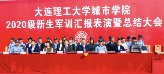 2020级新生军训汇报表演暨总结表彰大会在体育场隆重举行。党委书记郭玉铸、党委副书记兼副院长(主持行政工作)杨斌、副院长石华、沈海龙、宋辉,以及各分院负责人、军训团的负责同志参加了大会。大会由学生工作部副主任刘学奇主持。