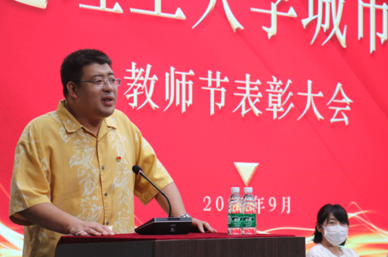 党政领导郭玉铸、杨斌、邹亚新、石华、沈海龙、宋辉,受表彰先进集体代表和个人荣誉获得者、教师代表100余人欢聚一堂,共庆教师节。副院长邹亚新主持会议。