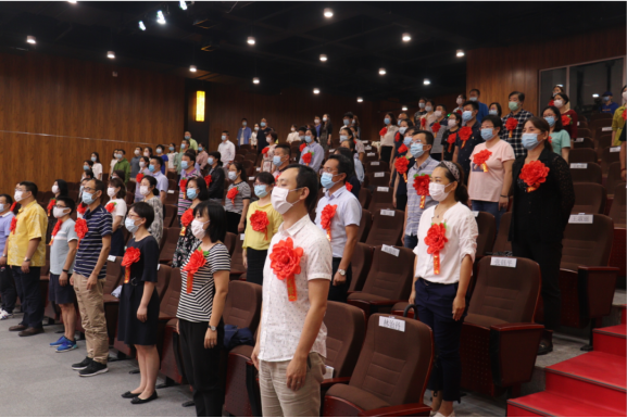 19名抗击新冠疫情优秀志愿者教师代表发言。她动情地说:“刚参加疫情防控时,其实心理压力非常大,担心被感染,但看到那么多奋不顾身牺牲在抗疫一线的医护们,我的心头总是有股股暖流从心底涌起,成为勇往直前的动力。”
