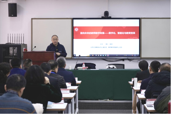 北京大学教务长办公室主任孙华教授做“面向未来的教师教学发展”主题分享。他指出,在科技革命的推动下,在线教育推动了高等教育的变革,技术赋能教育为构建教育公平与均衡发展打开新格局。