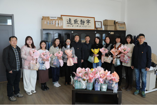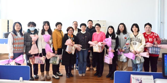 领导在相关部门负责人的陪同下分别前往各分院及机关教辅部门,为坚守岗位的女教职工发放福利品和鲜花,并为大家送上节日的祝福。