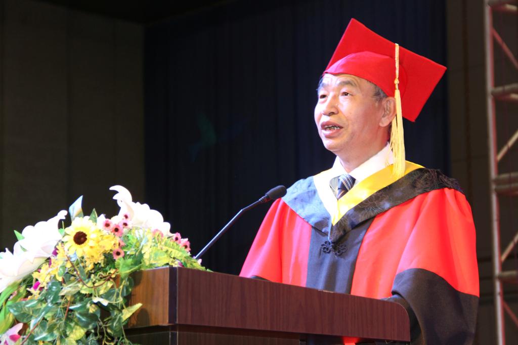 匡国柱院长在毕业典礼上讲话。匡院长首先代表伟德