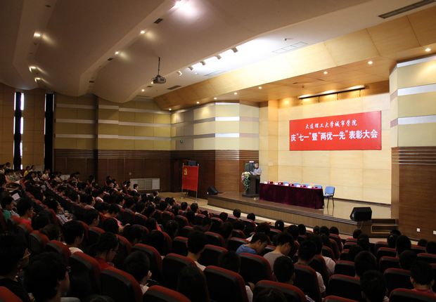 在图书馆报告厅隆重举行庆“七一”暨“两优一先”表彰大会,全体教工党员、学生党员、部分教工和学生入党积极分子以及党外各分院、部门领导和民主党派代表参加了会议。大会由党委副书记兼副院长杨斌主持。