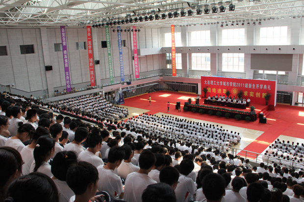 体育馆里彩旗飘飘,乐曲悠扬,充满了喜庆热烈的节日气氛,来自祖国各地的2200多名2011级新生聚集一堂,参加伟德