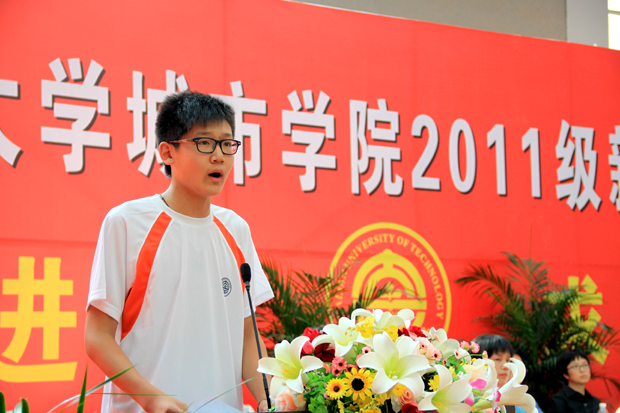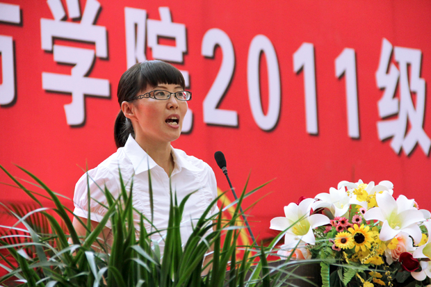 随后,教教师代表孙苓发言,她建议2011级新同学在大学生活中注重人格成长、注重学识成长、注重能力成长;在校生代表潘瑜与新生分享大学生活的感想,建议他们珍惜大学生活,规划好自己的大学,用汗水和智慧向自己的目标靠近;新生代表胡光禹表达了全体新生要用青春和汗水问鼎学业的灿烂辉煌,用勇气和激情书写人生壮丽篇章的雄心壮志。