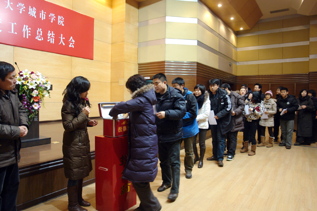 党校副校长尹世泽老师的主持下,全院民主测评代表和副教授以上教师以投票的方式对伟德