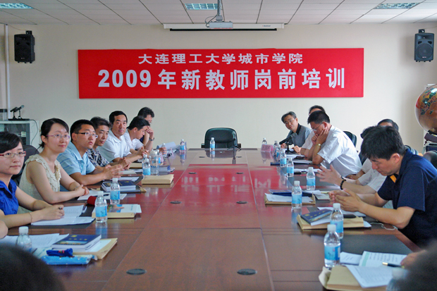 7月11日上午8时30分,由人力资源部组织的2009年新教师岗前培训在教学楼八楼会议室举行,院领导匡国柱、郭玉铸、杨斌、沈海龙、李宪起、王玉林参加了会议。本次培训共有15名新教师参加,为期一天半。