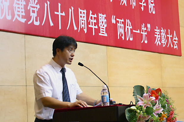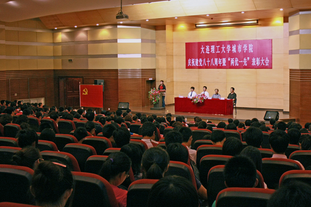 在图书馆报告厅隆重举行庆祝建党88周年暨“两优一先”表彰大会。伟德