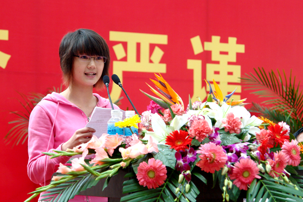 优秀学生标兵称号的广播电视新闻学0602班学生何素静代表全体获奖学生发言,她感谢伟德