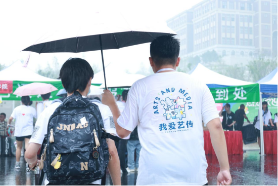 上午9时许,迎新工作如火如荼进行中,天空却下起了雨,有限的雨伞打给了新生及家长,雨水打湿了志愿者们的衣背,但肩负任务的他们却没有丝毫懈怠,一趟趟穿梭在人群中,一句欢迎、一个微笑、一次讲解,点滴汇聚了城院人的热情与期待,在忙碌的校园里留下了最美身影。