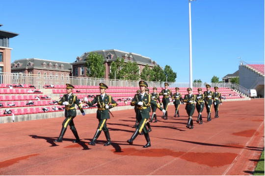 国旗护卫队踏着坚定的步伐,怀揣着满腔热忱,护送着鲜艳的国旗步入场地。伴随着激昂的国歌声,五星红旗徐徐升起,全体参会人员向国旗行注目礼。开学第一课在庄重而有序的升旗仪式中,正式揭开了序幕。