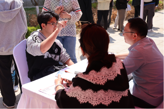 院长杨斌深入双选会现场,实地考察各企业展位,详细了解招聘岗位需求与毕业生应聘情况,并对活动组织工作进行指导。