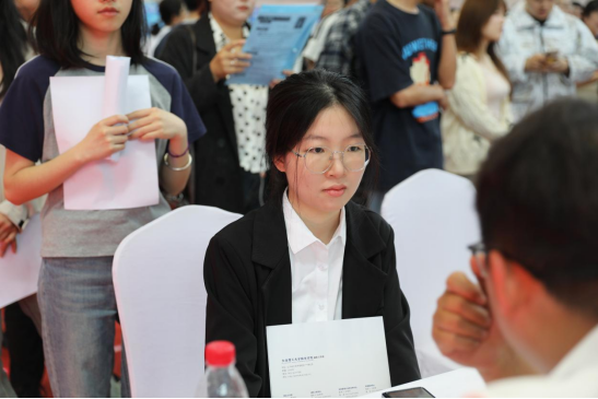 双选会现场气氛热烈,毕业生们手持精心准备的简历,积极与用人单位交流,深入了解岗位需求、薪资待遇以及职业发展路径等方面情况。