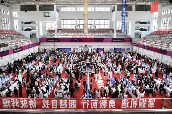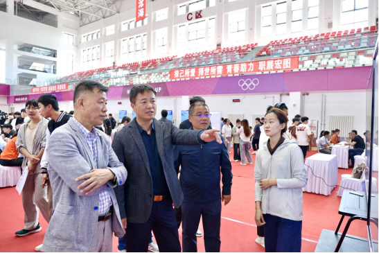在体育馆成功举办“逐梦青春职引未来”2025届毕业生就业与2026届毕业生实习双选会。活动共吸引140余家用人单位参与,提供就业岗位390余个,现场初步达成就业意向1025人次。