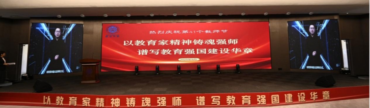 表彰大会共分《师者如光,以探索以热忱》《师者如光,以勇担以坚守》《师者如光,以奉献以传承》三个篇章。本次会议首次使用AI数字化主持人。