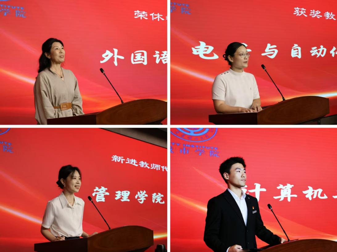 傅诗豪分别作为荣休教师代表、获奖教师代表、新进教师代表、学生代表在会上发言