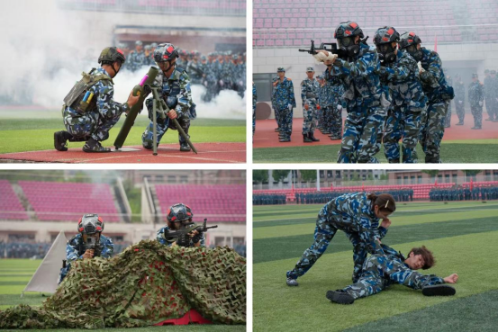 大会在庄严的国歌声中拉开帷幕。汇报表演环节精彩纷呈:匕首操方阵动作凌厉,寒光闪烁;战术方阵模拟实战,配合默契;分列式各方队步伐铿锵,口号嘹亮;军体拳表演虎虎生风,气势磅礴,充分展示了为期三周的军事训练成果,赢得了现场阵阵掌声。