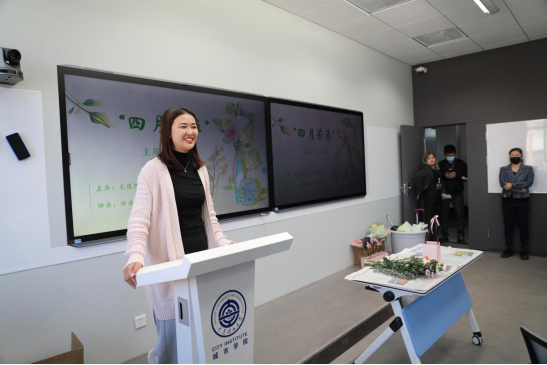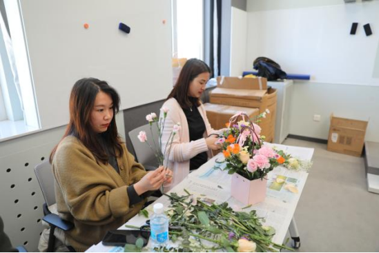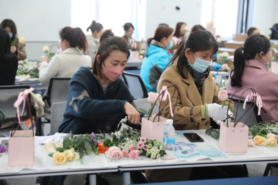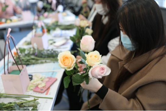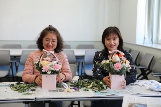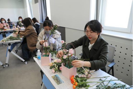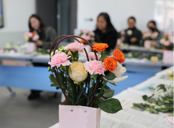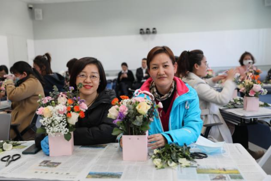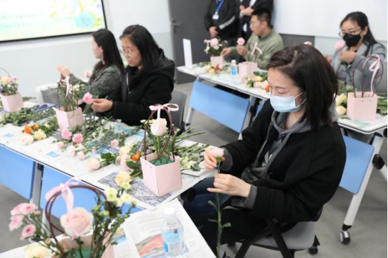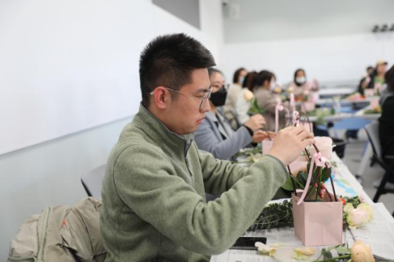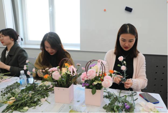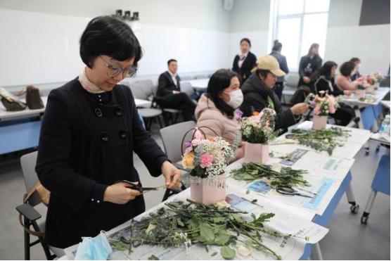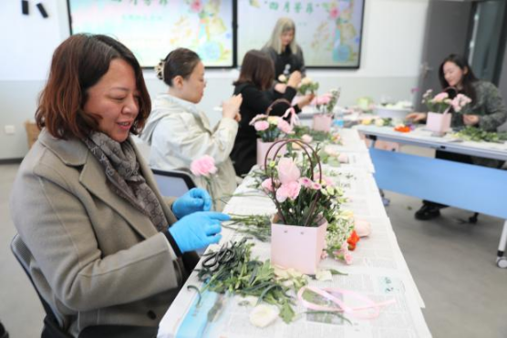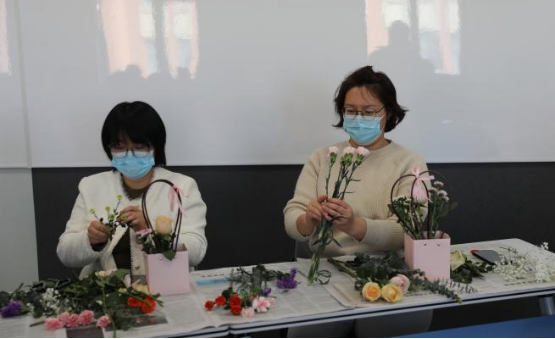 工会举办的“四月芳菲”主题插花活动。