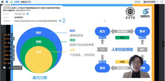 党委教师工作部、就业工作部联合组织就业指导能力提升线上专题培训班。各分院领导班子成员、各部门主任(副主任)、教研室主任、全体专任教师、全体辅导员、担任班级导师的行政教师等共计200余人参加线上学习。