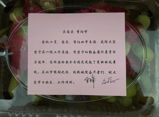 本网讯 10月1日上午,副院长宋辉、邹亚新代表伟德 在行政楼大厅为国庆期间驻守校园的全体辅导员、各机关、后勤集团等教师、员工发放慰问品,送去温暖和祝福,对大家的辛苦付出表示感谢。