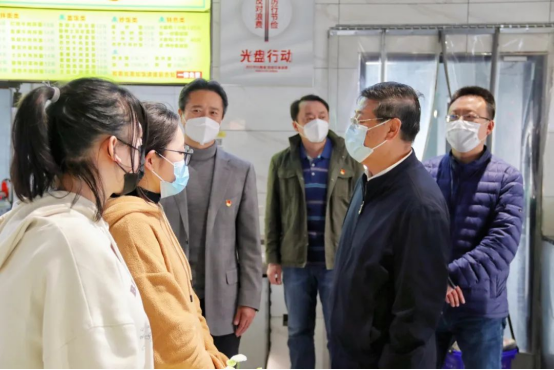 疫情防控的总体情况,包括校园分区网格化管理、健康场所的设置、学生心理健康辅导、生活物资保障等各项工作。邱连波在检查过程中,随访了部分学生、食堂档口人员、生活超市员工,了解了学生的学习、生活、心理情况,以及教职员工在封校期间的各项情况。