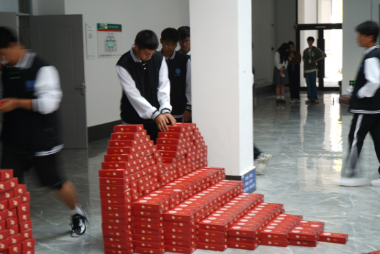 9月21日早晨八点,学生工作部在阶梯教学楼大堂为留校过节的大一新生及全院贫困生派发月饼礼盒1747余份,并为同学们送去节日的问候。