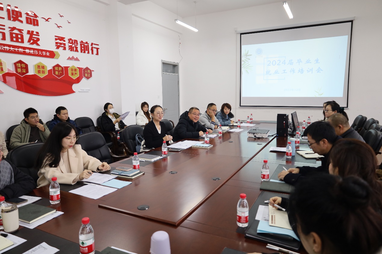 本网讯 12月8日上午,就业工作部在艺传楼411会议室组织召开2024届毕业生就业工作培训会议,各分院党总支书记(副书记)、2024届辅导教师、就业工作部全体教师参加培训。会议由就业工作部主任杨兆宇主持。