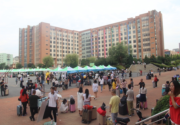 与大连火车站、大连港码头之间,学生家长的自驾车、运送新生的出租车、奔波往返的公交车在整条铁山西路汇聚成车的洪流,人的海洋。由于伟德