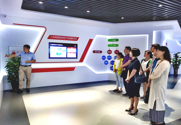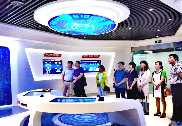 副院长张坤教授、软件教研室主任张应博教授、电子技术基础教研室主任于海霞教授及相关教师一行8人,参观华为大连云基地创新中心(大连),听华为专家介绍云计算的发展现状、云计算对比传统IT产业的优势。