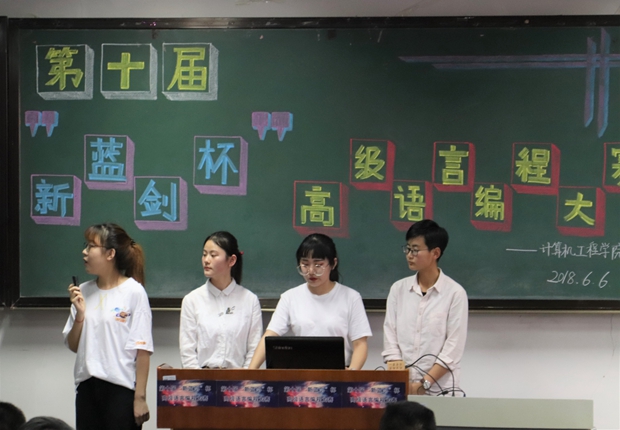 主办的第十届“新蓝剑杯”高级语言编程大赛于6月6日18:00在教学楼1308教室举行,经过激烈的比拼,“天地会队”的“FIND”App摘得大赛桂冠,“消音98K队”凭借“掌上校园”App获得亚军,“小白队”的“自创游戏软件”屈居季军,“想世界队”的一个休闲时间利用方案平台获得“最具潜力奖”,“字符诱惑队”的“视频转译软件”获得“最佳创意奖”。