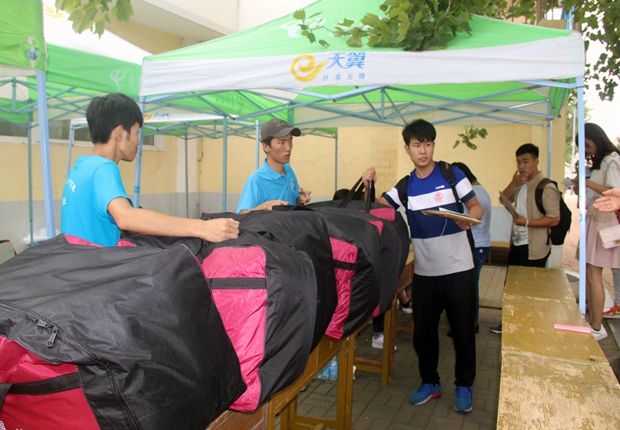 | 新生报到处不见了往日的“长龙” |