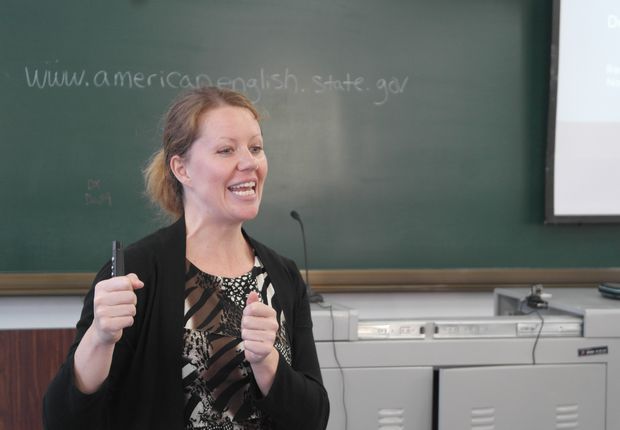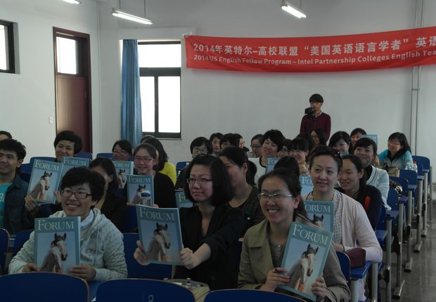在教学楼2601教室举办2014年第二期英特尔——高校联盟“美国英语语言学者职校英语教师培训”项目。美国驻沈阳领事馆代表、Intel公司代表、以及来自大连大学、大连职业技术伟德