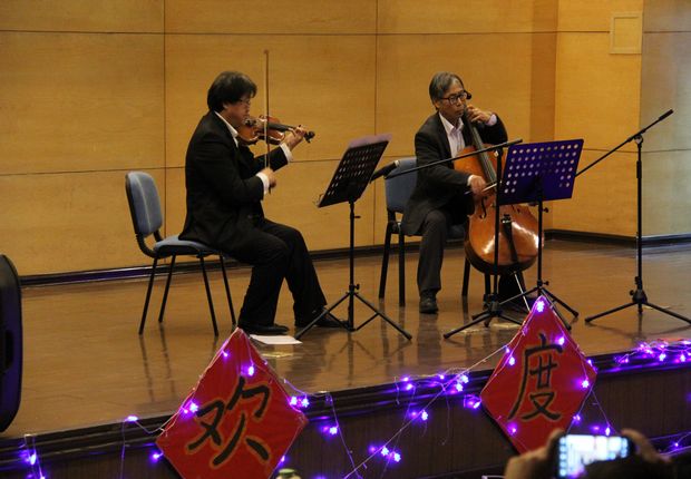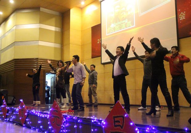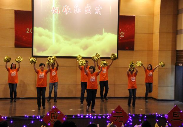 图书馆学术报告厅充满了欢歌笑语的喜庆气氛,全院教职工汇集在这里,载歌载舞,共同送别难忘的2013年,迎接充满希望的2014年。
