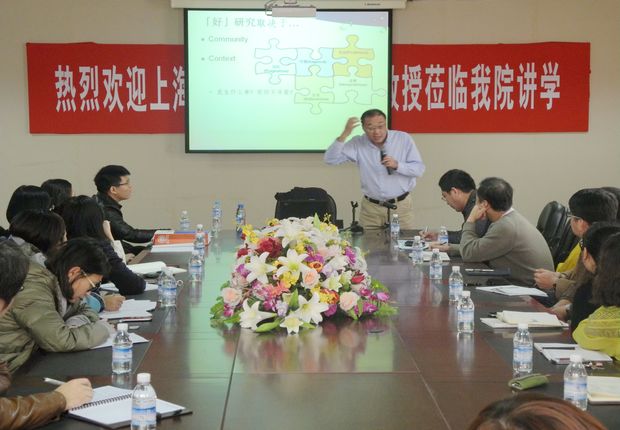 11月14日下午,上海外国语大学博士生导师郑新民教授莅临伟德