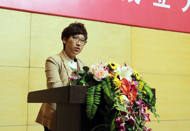 校友代表蓝茹在发言中饱含深情地回忆了自己四年的大学生活,回忆起校园里的点点滴滴,一草一木,回忆起恩师对自己的深切关怀和谆谆教诲,回忆起自己由青涩到成熟,从中学生到大学生的成长历程。讲到动情处,她眼含热泪,台下师生和校友也不禁为她的真情所打动。