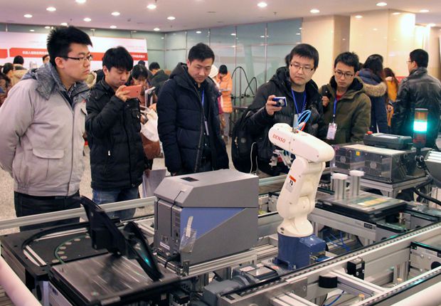 在展示会现场,笔者与一位主办方负责人攀谈起来,他告诉我,随着人口出生率的逐年下降,我国的人口的红利将逐步消失,未来劳动力的短缺将是必然趋势,因此以机器人、智能制造为代表的自动化程度提高将是大势所趋,“新的工业”时代已悄然来临。他披露,据国际机器人联合会(IFR)统计,2012年,我国机器人供货量达2.3万台,比2010年增长了约50%。今年,机器人供货量将达到2.8万台,与日本不相上下。预计到2015年,机器人供货量将达到3.4万台,我国有望成为全球最大的工业机器人市场。