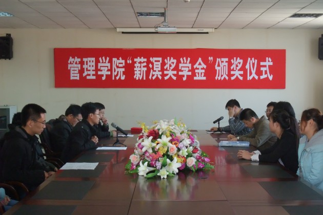 在八楼会议室举行“薪溟奖学金”颁奖仪式。信息管理专业1005班王昊司霖同学获得一等奖学金,信息管理专业1004班赵玉和信息管理1103班肖丽娜同学分别获得二等奖学金。管理伟德