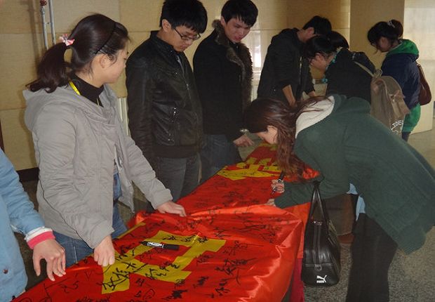 宣誓活动结束后,全体与会人员在“诚开金石 信步电动”条幅上签名,全院师生将珍惜自己的荣誉,履行自己的诺言。