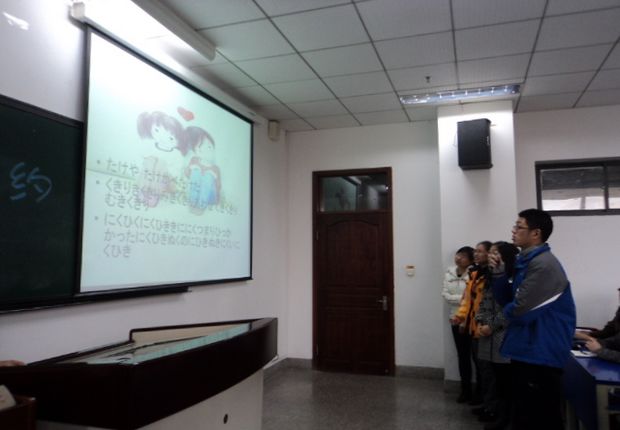 此次日语朗诵比赛旨在培养同学们学习日语的兴趣,调动大家学习日语的热情,同时也为喜爱日语的同学提供了展示日语实力的舞台。经过激烈角逐,阮夏阳获得一等奖;牛达、魏伟强获得二等奖;甘红芬、杨鋮、刘慧婷获得三等奖;郭琳、兰珍珍获得优秀奖。