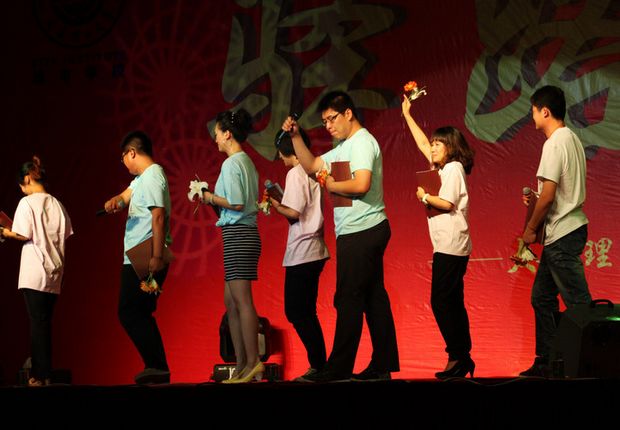 老师们对毕业生的深切祝福。随后各分院毕业生代表向母校献礼,一幅写有“辉煌城院、芬芳八载、青春城院、桃李天下”的大型画作表现出全体毕业生的共同愿望,晚会至此达到高潮。晚会最后在毕业生代表演唱的歌曲《启程》中圆满落幕。