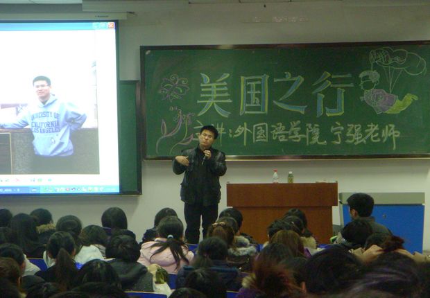 讲座中,宁强老师与同学们一同分享了他在美国学习考察的见闻经历。一组组富有美国地域特色、反应美国文化神髓的精美照片和源自美国本土的第一手生活学习影音资料将同学们引入到丰富多彩的美国文化殿堂中。