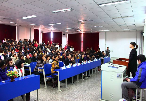本届教师技能大赛从第12周开始,持续到16周结束。期间举办了讲稿大赛、课件大赛、板书大赛、口语大赛、观摩课学习等活动。在总结汇报大会上英语、日语专业教师纷纷登场,通过外文歌曲演唱、双簧表演、动画配音、配乐散文朗诵等多种形式展现了自己标准优美的外语功底和丰富多彩的艺术才华。200多人的阶梯教室座无虚席,气氛热烈,高潮迭起。随后与会人员又通过8分钟的短篇视频播放,一起重温了整个教师技能大赛的点点滴滴。