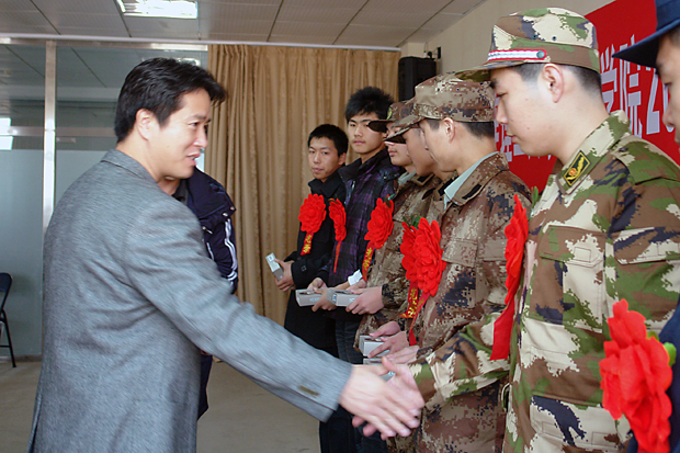 随后,郭书记向即将远行的新兵提出3点希望:一要时刻牢记自己的责任,希望大家把对父母、对人生的责任升华为对国家、对社会、对民族的责任,在祖国需要自己的时刻义无反顾,挺身而出;二是要珍惜部队生活这段经历,从校园到部队极大丰富了大家的人生阅历,这是很多人所不具备和难以企及的,在部队这座大熔炉里磨练意志、锻炼思想,提高人生价值,是你们人生的宝贵财富,必将对你们今后的人生道路产生深远而积极的影响;三是要勤于思考,虽然我们处于和平年代,但是周边环境依然不很太平,战争的危险依然存在,大家要时刻保持清醒的头脑,静观国际风云变幻,时刻准备承担起人民赋予的责任和义务。